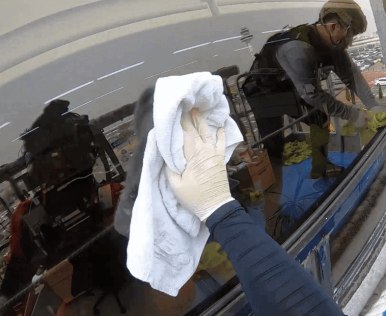 김포공항 고층 빌딩 유리창 청소 작업 1일차가 완료되었습니다.
